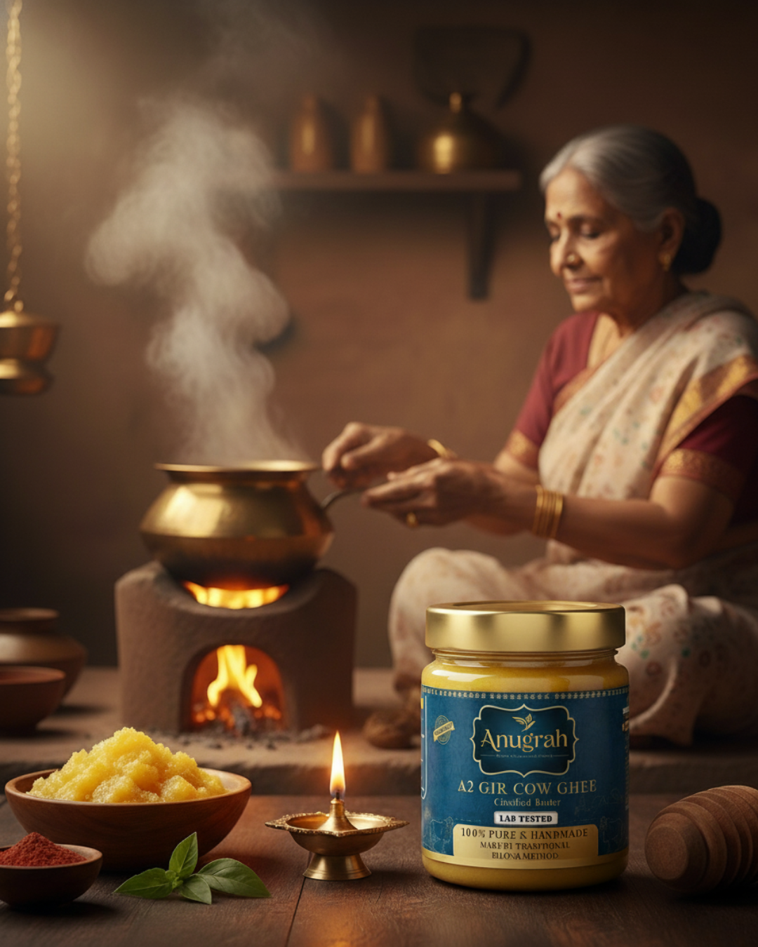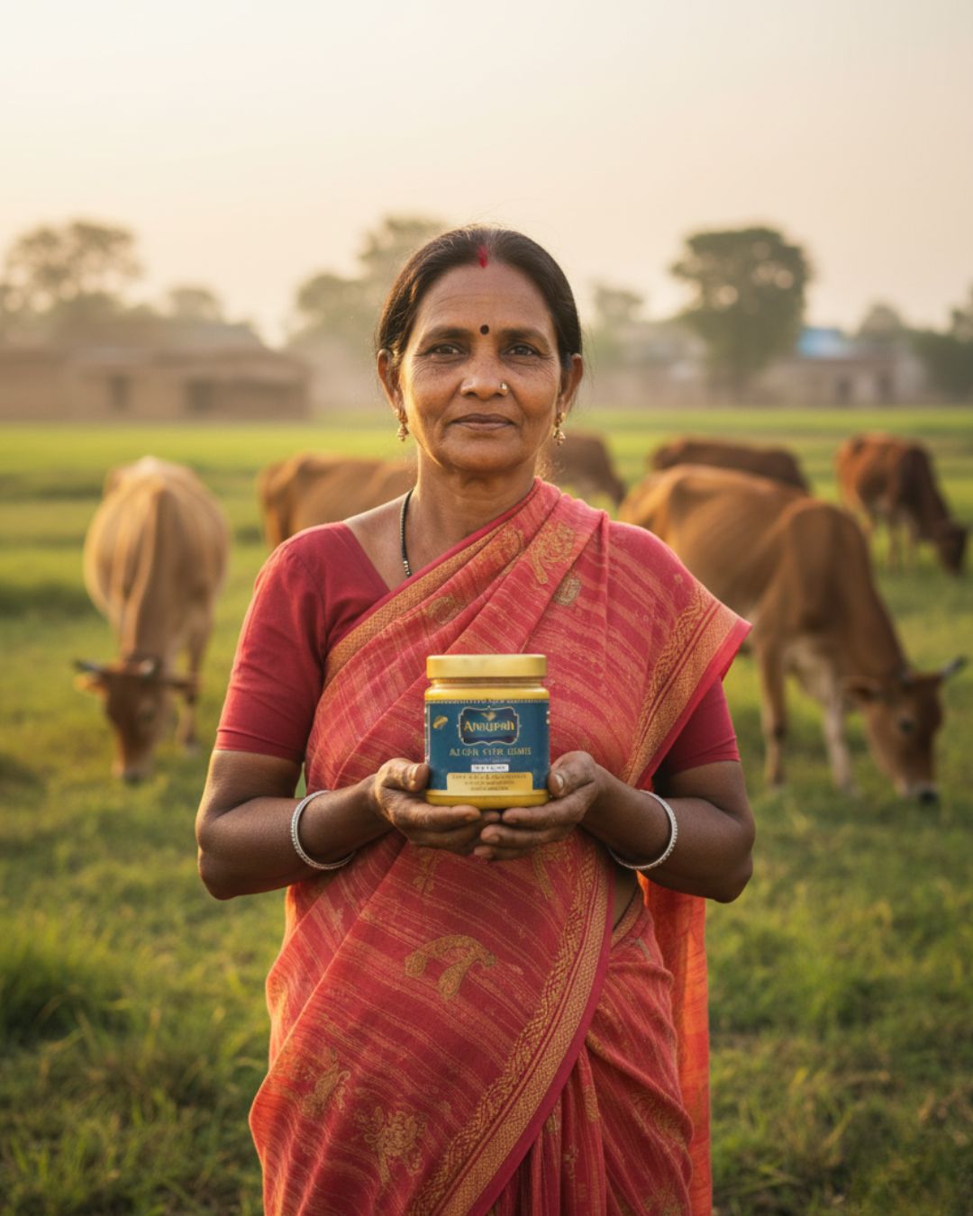 Sourced from ethical Gir cow–raising families who follow traditional dairy practices.